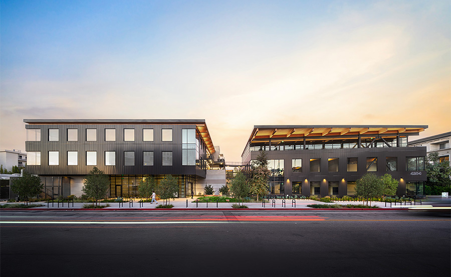 Constructed with mass timber, the buildings combine warmth and character with a lighter environmental footprint. Thoughtful amenities—including private outdoor terraces, landscaped courtyards, an on-site café, and secure structured parking with valet service—create a refined yet relaxed coastal work setting.